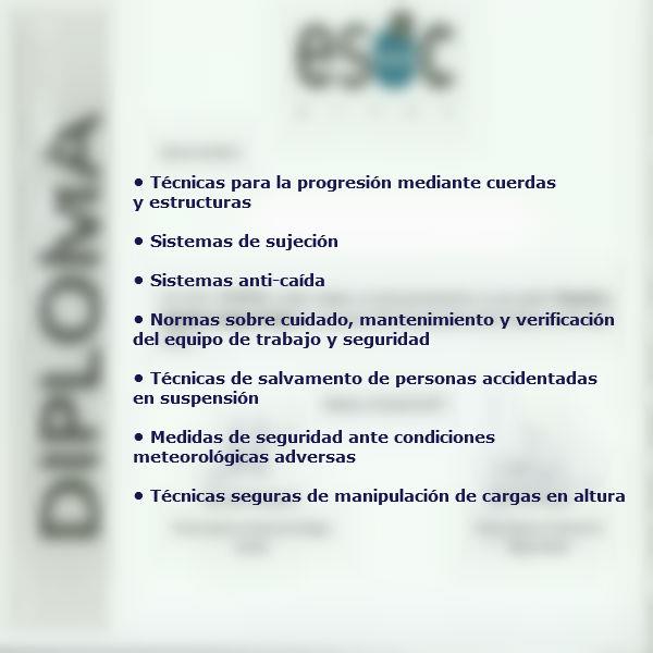 Acometidas eléctricas, soldaduras, tirada de cables, antenas, aparatos aire acondicionado, terrazas, tejados, silos, depósitos, torres, aerogeneradores, limpieza de chimeneas, deshollinar chimeneas, etc.